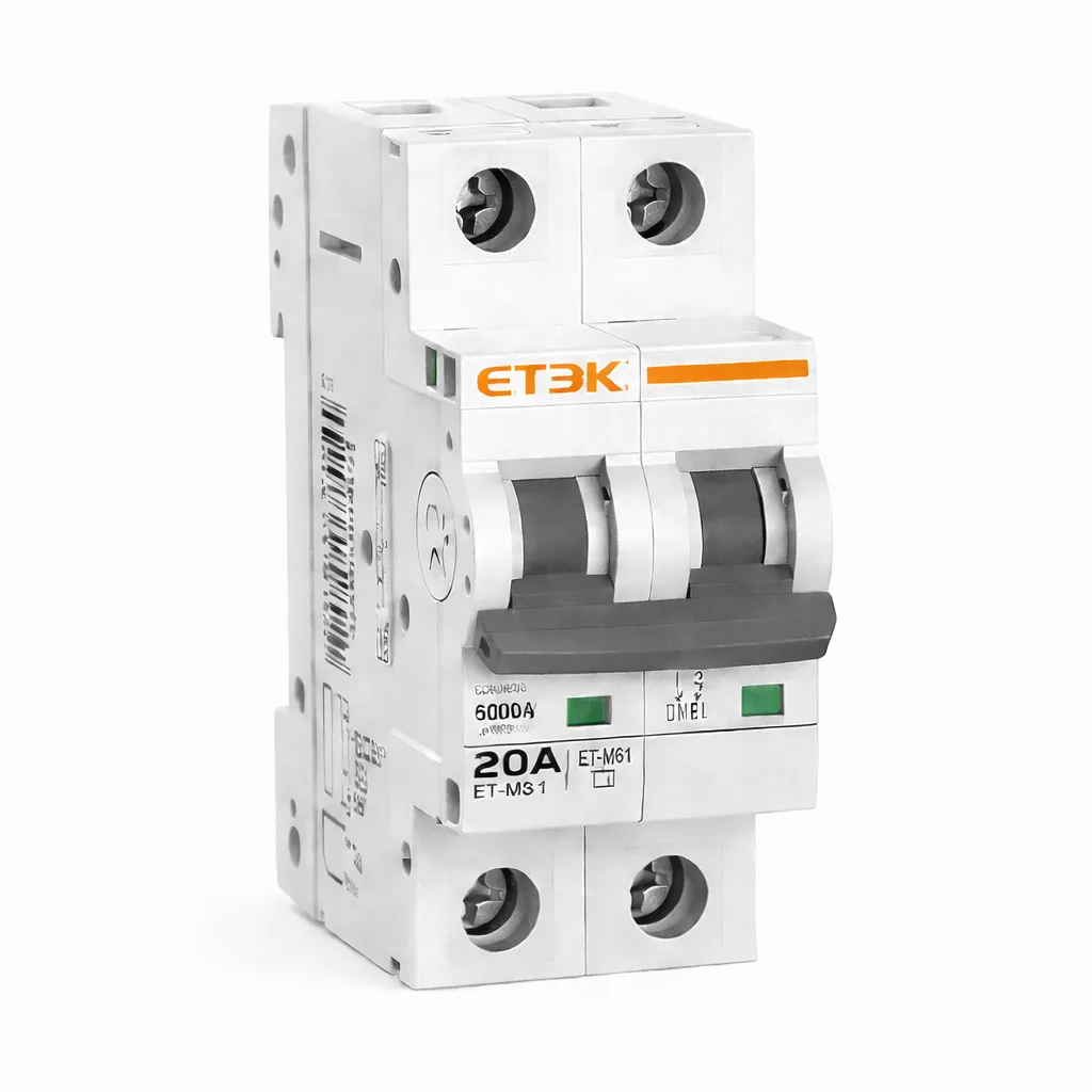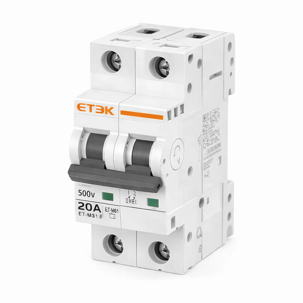 The ETEK 20A 2-Pole DC Miniature Circuit Breaker (MCB) is designed to provide reliable protection for DC electrical systems, making it ideal for solar PV installations, battery systems, and other direct current applications. Built for safety, durability, and consistent performance, this breaker protects circuits against overload and short-circuit conditions, ensuring system stability and equipment longevity.